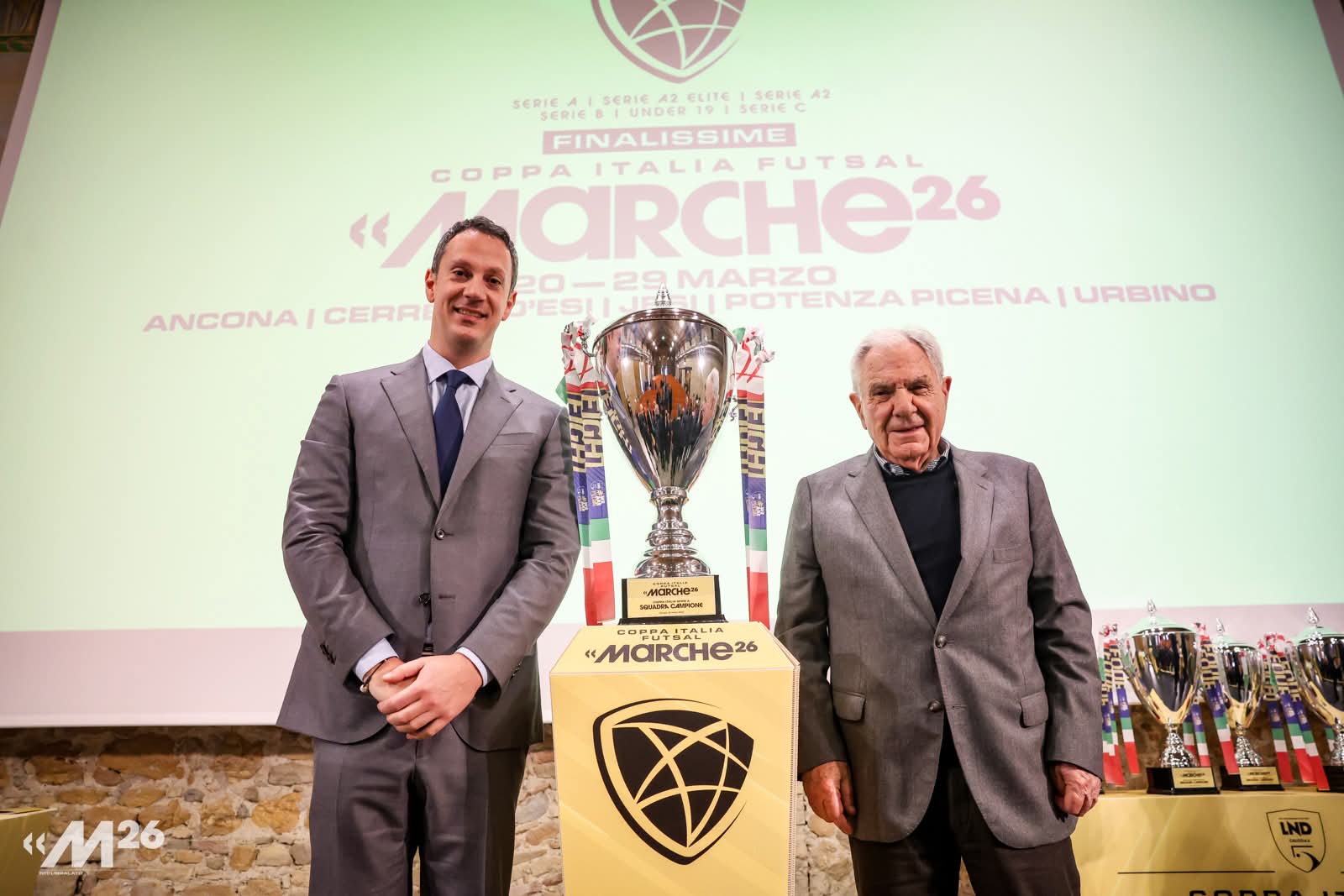 ANCONA – Sono le Marche a ospitare le finali di Coppa Italia maschili di calcio a cinque per il secondo anno consecutivo. Ieri mattina, presso la Mole Vanvitelliana di Ancona, ha preso vita la conferenza stampa di presentazione, durante la quale sono stati sorteggiati i tabelloni di tutte le sei coccarde tricolori in palio dal 20 al 29 marzo. Dove? In cinque città diverse: Ancona, Jesi, Urbino, Potenza Picena e Cerreto d’Esi. Le categorie partecipanti: Serie A, A2 Élite, A2, B, C e Under 19.
